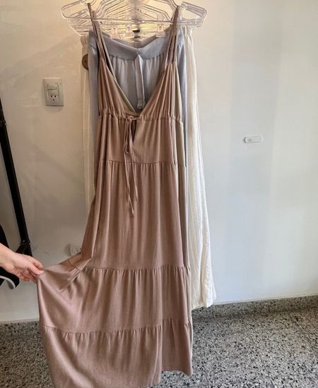 Vestido largo de lino con cordon en el busto.