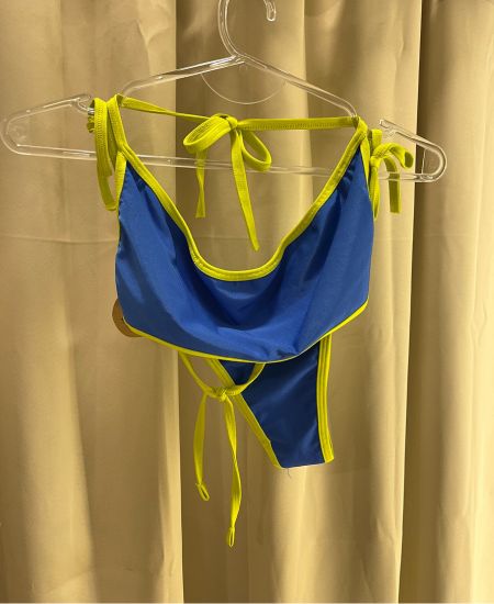 Bombacha que se ata a los costados, tiro a la cadera, con micro top.